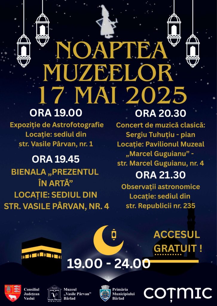 Așteptăm cu nerăbdare întâlnirea cu toți bârlădenii iubitori de frumos, artă, știință și cultură, în minunata Noapte a Muzeelor.