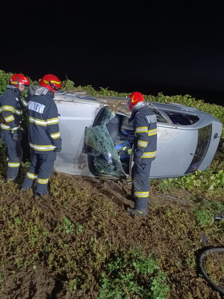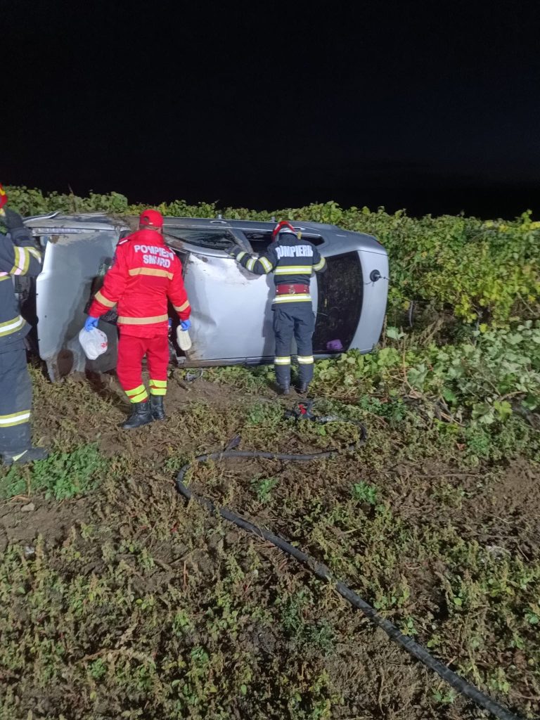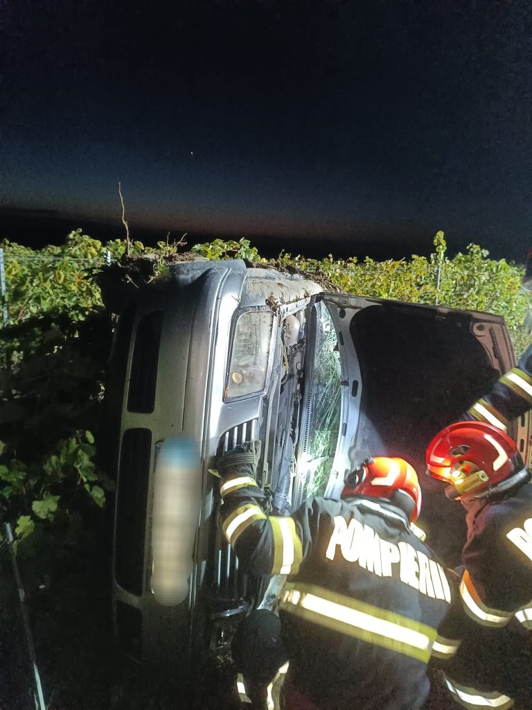 Dimineață cu emoții pentru patru persoane aflate într-un autoturism care a ieșit de pe șosea și s-a oprit într-o plantație de vie, pe raza localității Plopi, comuna Bunești-Averești.