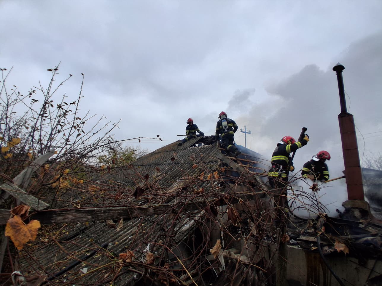 Flăcările au mistuit aproximativ 40 de metri pătrați din acoperiș, însă intervenția rapidă a pompierilor a făcut posibilă salvarea locuințelor din apropiere și a anexei.