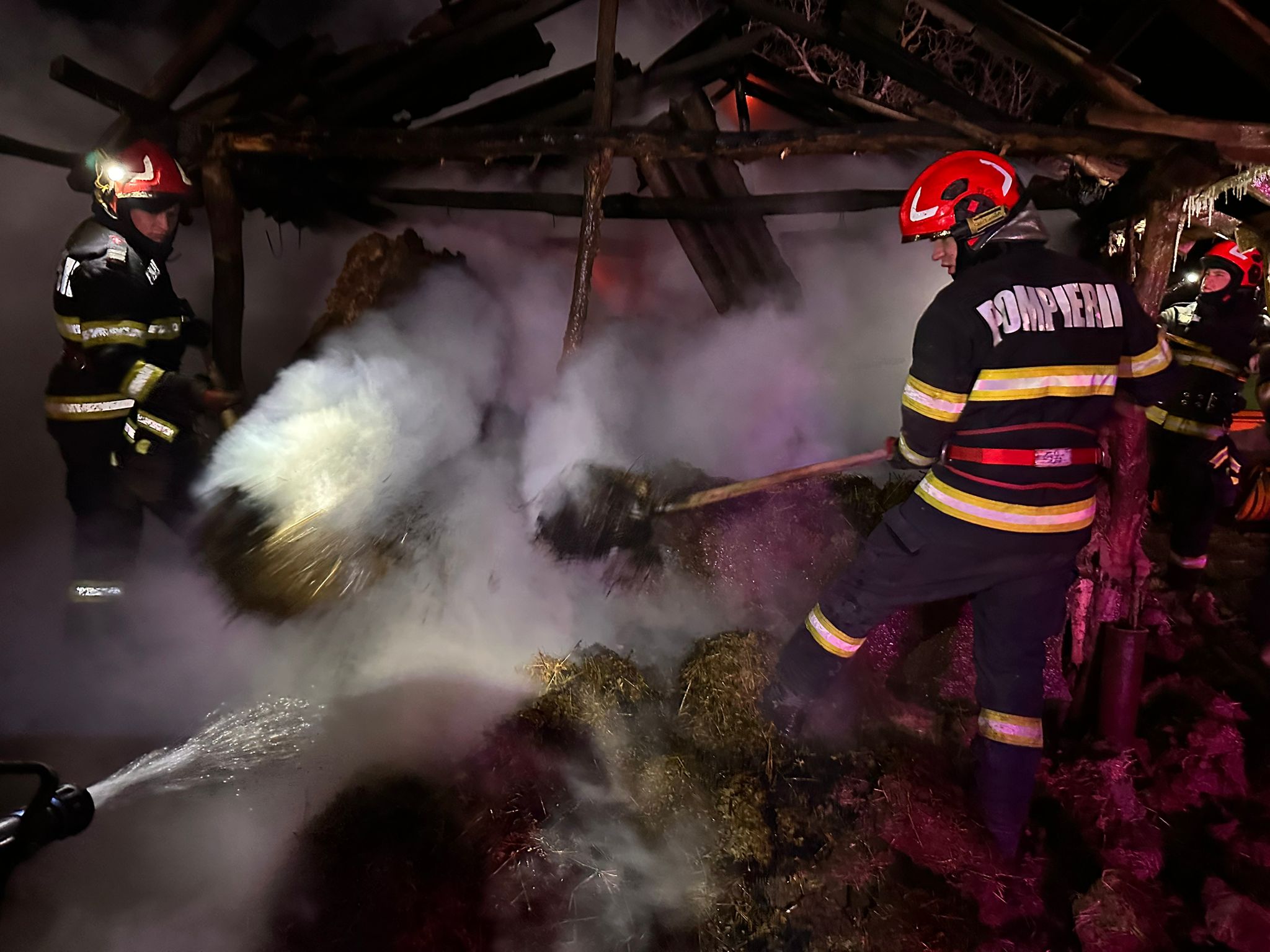 La sosirea forțelor de intervenție, incendiul se manifesta generalizat la un grajd folosit ca depozit de furaje. Din fericire, în interior nu se aflau persoane sau animale.