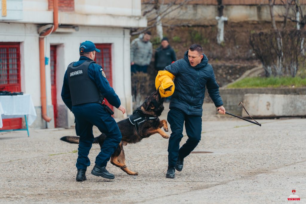 Evenimentul a continuat în curtea unității, unde jandarmii vasluieni au oferit un adevărat spectacol tactic. Exercițiile dinamice de intervenție și restabilire a ordinii publice au captat atenția celor prezenți, la fel ca demonstrațiile alături de câinii de serviciu, care au stârnit aplauze și admirație.