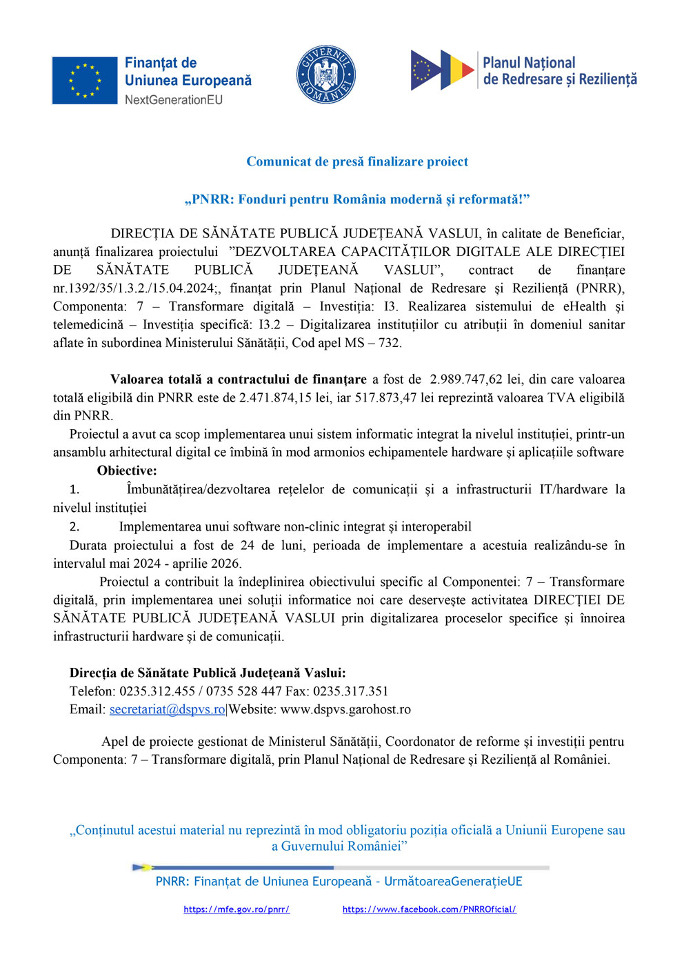 Anunț – CONSILIUL JUDETEAN VASLUI