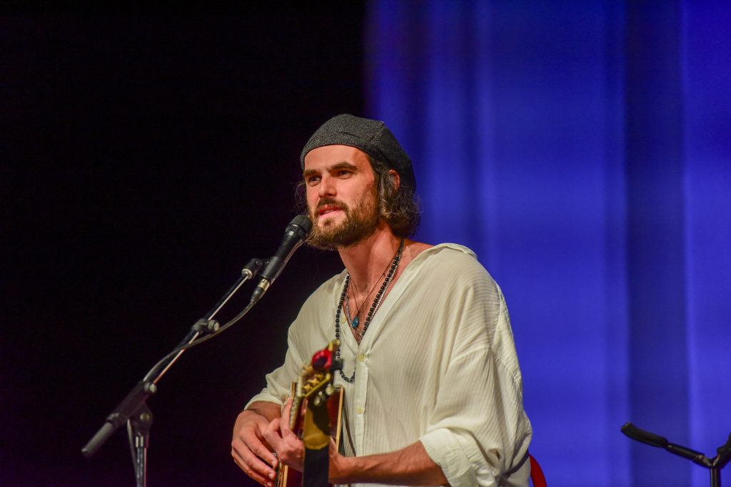 Sala de spectacole a Centrului Cultural Județean Vaslui a fost plină de tineri, care au vibrat cu artistul, cântând împreună piese mai mult sau mai puțin consacrate.