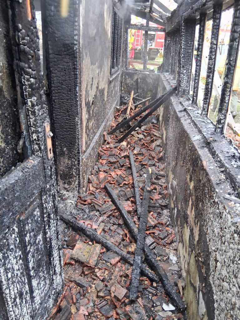 Au fost afectate o încăpere cu bunurile din interior și acoperișul anexei, pe o suprafață de aproximativ 30 de metri pătrați. Nu s-au înregistrat victime.