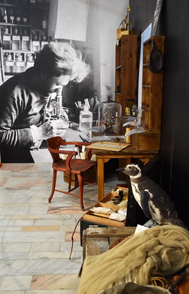 Vizitatorii pot admira piese autentice care au aparținut marelui naturalist: microscopul personal, o lupă realizată special pentru expediția „Belgica”, jurnale de bord și fragmente din corespondența purtată cu membrii echipajului. Aceste obiecte rare oferă o perspectivă intimă asupra vieții la bordul navei în timpul primei ierni petrecute vreodată de oameni dincolo de Cercul Polar de Sud.