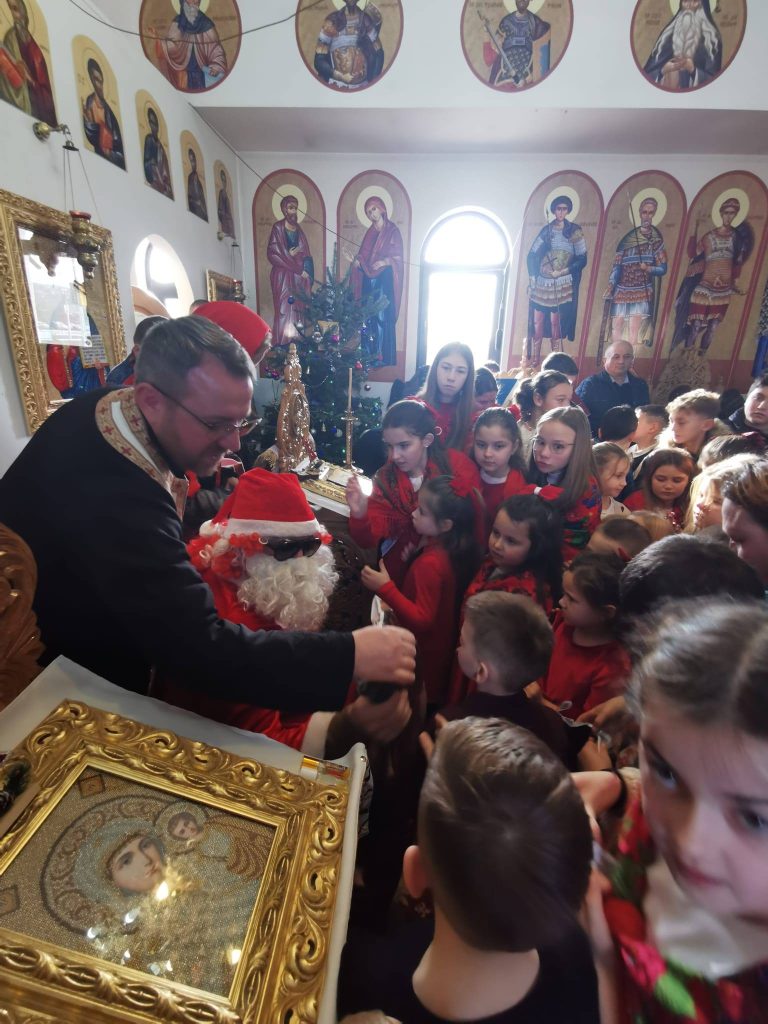 Cei mici au adus spiritul Crăciunului în biserică printr-un recital deosebit de colinde tradiționale, interpretate cu sensibilitate și dăruire. Vocile copiilor au creat o atmosferă caldă și plină de emoție, încântând credincioșii prezenți la slujbă, care i-au răsplătit cu aplauze.