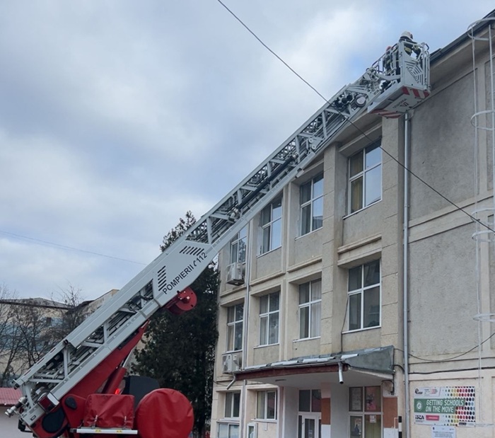 Detașamentul de Pompieri Bârlad a intervenit în municipiul Bârlad, pentru degajarea unor elemente de construcție care prezentau pericol pentru trecători. O bucată de tablă desprinsă de pe clădirea Școlii Nr. 9 risca să cadă, fiind necesară intervenția de urgență.