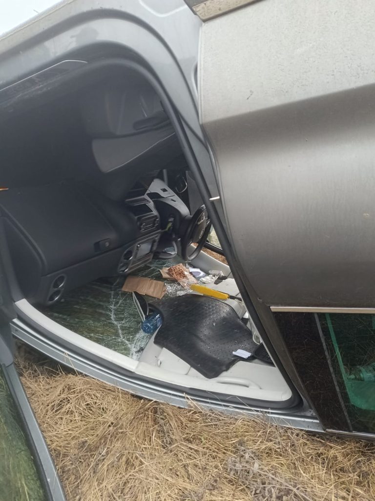 În autoturism se aflau trei persoane – doi bărbați și o femeie – care s-au autoevacuat până la sosirea echipajelor de intervenție. Femeia a suferit un traumatism cranio-cerebral și a primit îngrijiri medicale din partea echipajului SMURD, însă a refuzat transportul la spital.