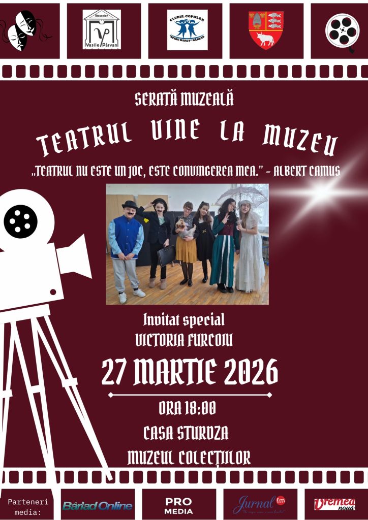 Pe 27 martie 2026, când întreaga lume marchează Ziua Mondială a Teatrului, la Muzeul „Vasile Pârvan” din Bârlad, luminile se vor aprinde pentru un eveniment special dedicat artei și copilăriei. La Casa Sturdza, serata muzeală „Teatrul vine la Muzeu” promite o întâlnire emoționantă între public și cei mai tineri artiști.