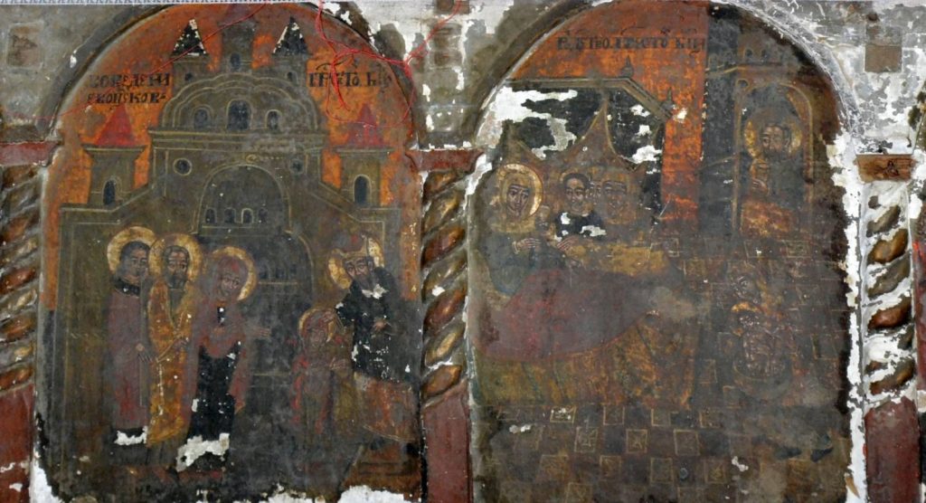 Icoanele împărătești, datând din secolul al XVII-lea, păstrează influențe mai vechi, cu nimburi în relief și decorațiuni florale bogate. În biserică s-au păstrat și manuscrise și cărți vechi, tipărite în slove chirilice, mărturii ale unei vieți spirituale intense, întreținute de călugării de la Mănăstirea Neamț.