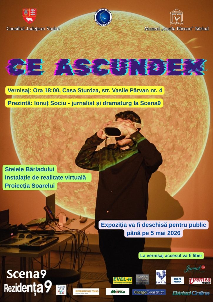 Evenimentul aduce publicului o parte din expoziția „Ce ascundem”, realizată de Scena9 și Rezidența9, care explorează teme precum memoria și spațiile invizibile. Vernisajul are loc de la ora 18:00, la Casa Sturdza, cu acces gratuit.